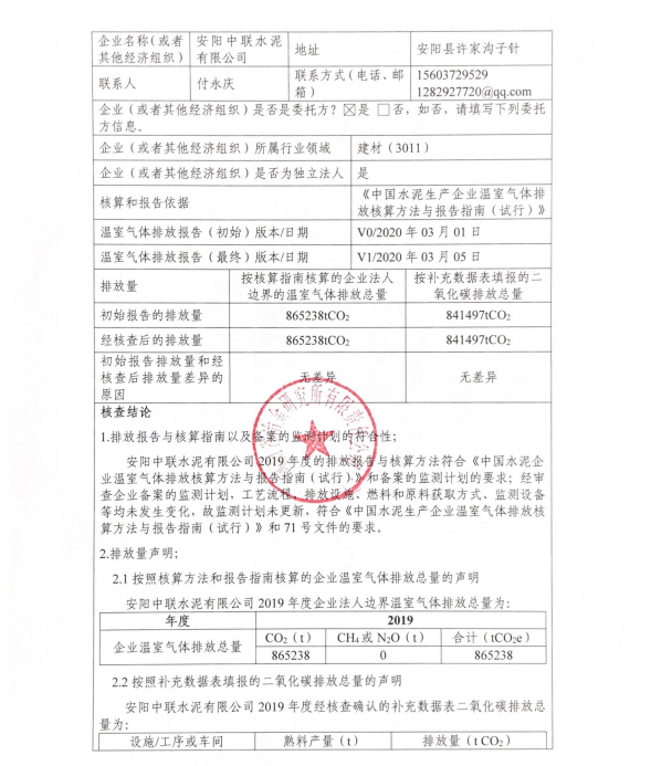 2019年度溫室氣體排放檢查報(bào)告